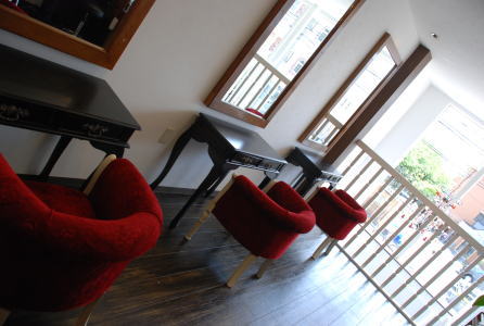 託児室の床は天然木のフローリング。壁は珪藻土、オモチャ